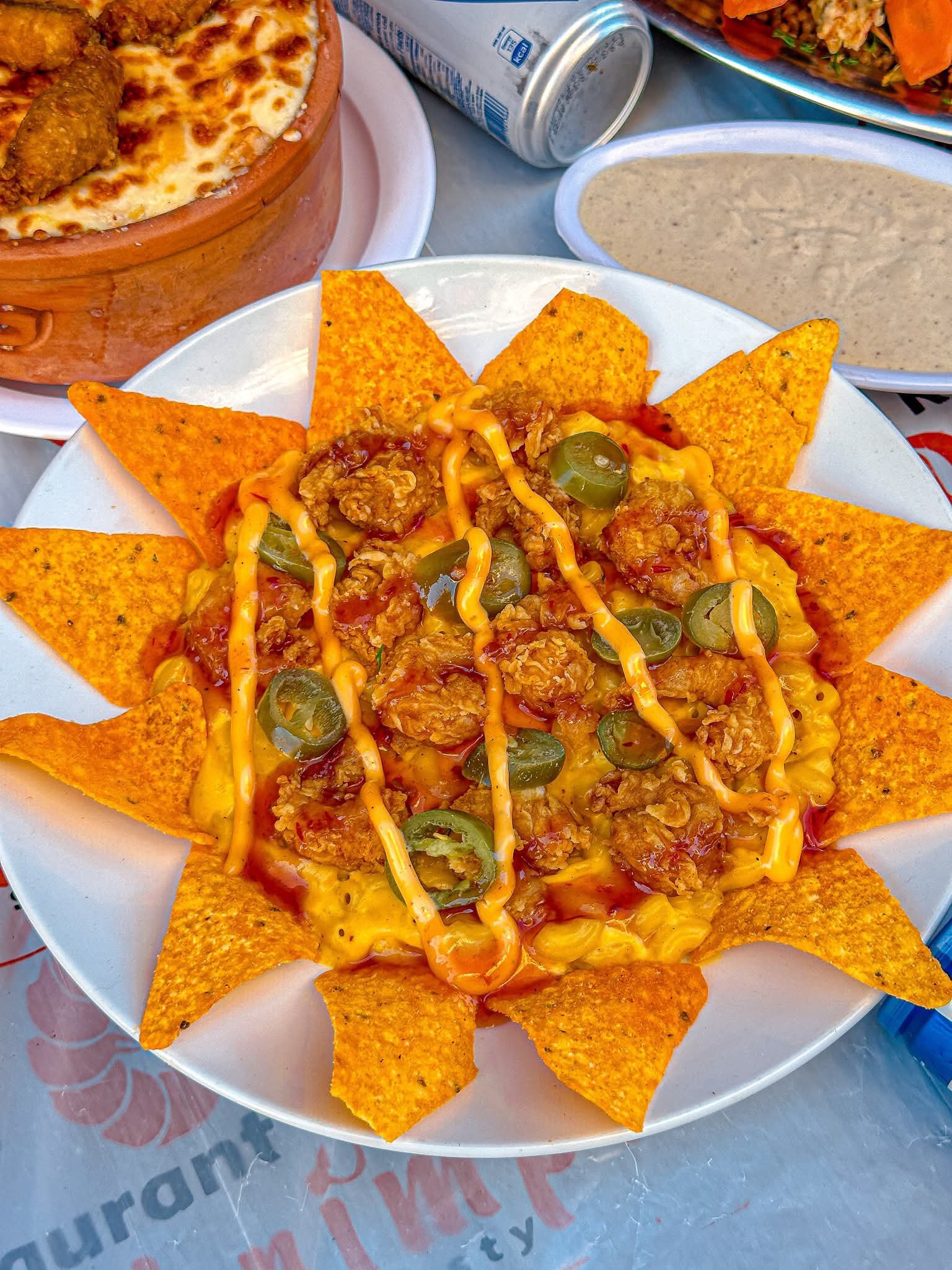 دوريتوس مع الجمبري الفرايد مع ميكس صوصات السويت شيلي و التكساس و الهالبينو